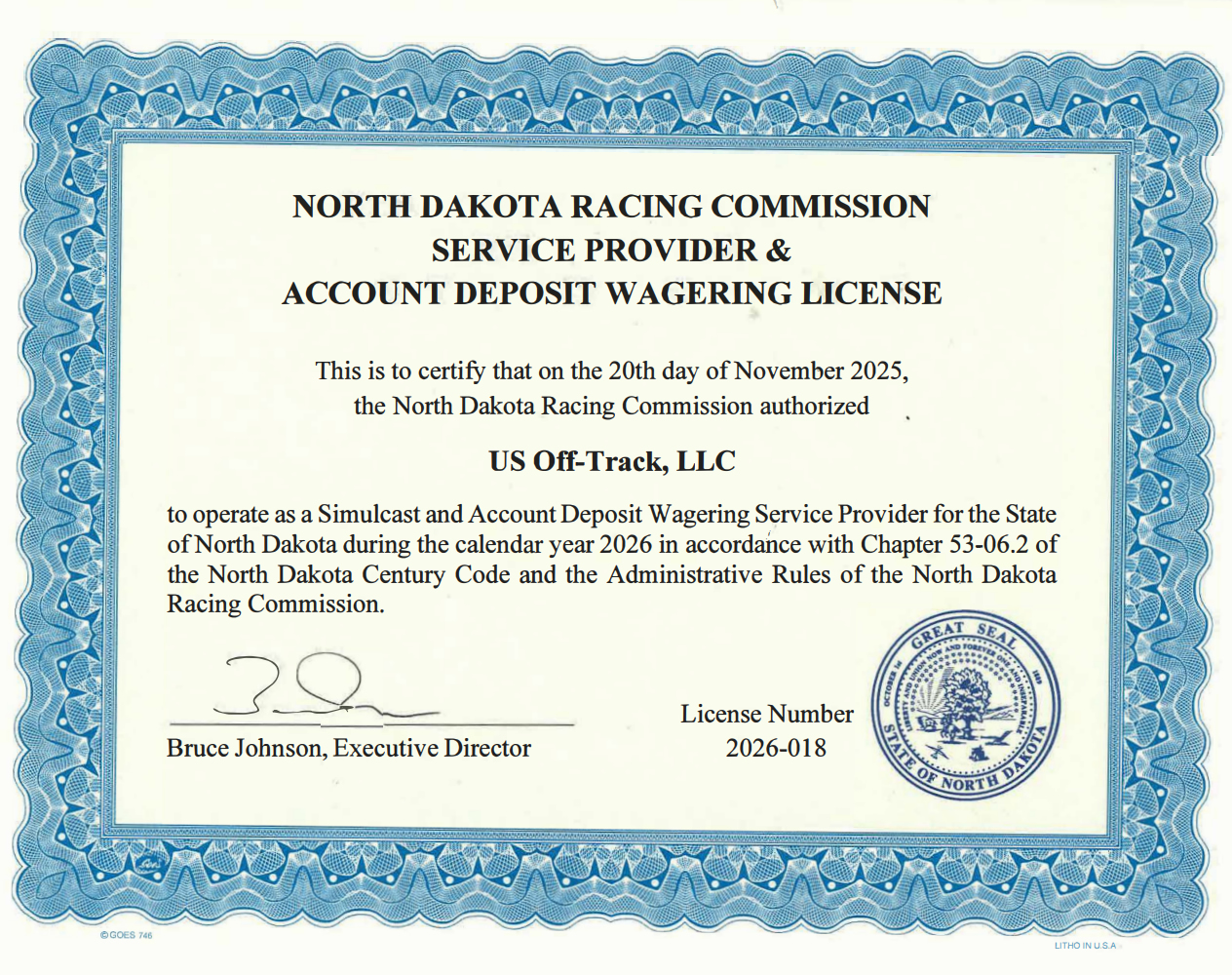 The North Dakota Racing Commission has approved this service. It is not intended to be an offer or solicitation in those states where prohibited.